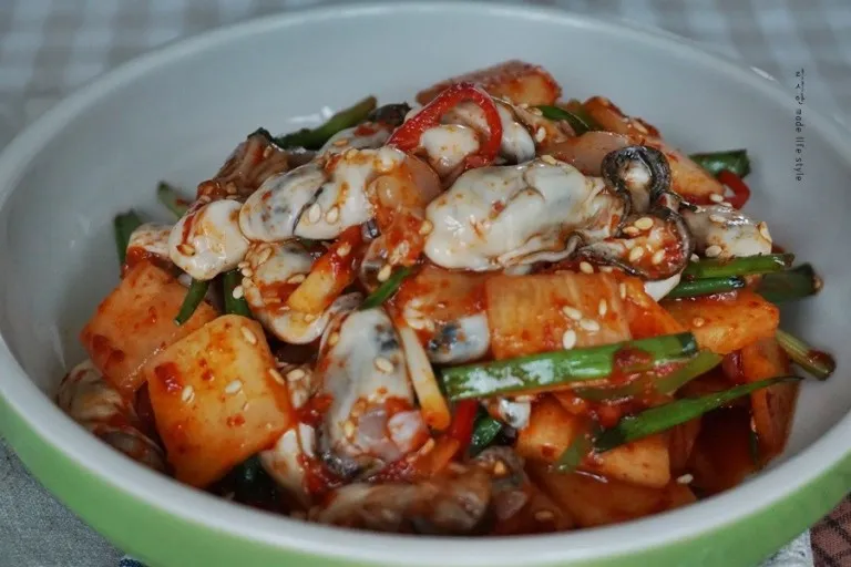 • 신선한 굴,양파,고춧가루,간장,설탕,다진 마늘,참기름