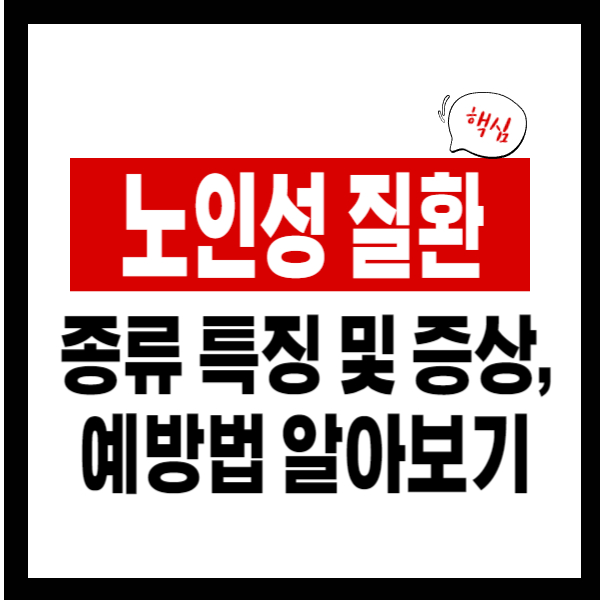 노인성질환은 노화 과정에서 발생하는 건강문제입니다. 노인들의 삶의 질을 나쁘게 할 수 있습니다. 이 글에서는 노인성질환 종류 및 예방의 특징, 진료, 간호, 예방에 대해 알아보시고 건강관리에 도움이 되었으면 합니다.