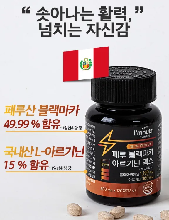 첫째, 블랙마카는 체력과 에너지를 증가시켜 주는 데 도움을 줍니다. 긴장과 스트레스를 줄여주고, 피로를 감소시키는 효과가 있어 일상생활에 활력을 불어넣어 줍니다.
