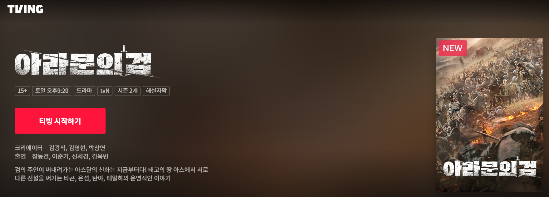 드라마 '아라문의 검'이 방영되면서 시청자들의 많은 인기와 호기심을 끌어내고 있습니다. 판타지적 요소와 리얼한 영상이 주말극장의 분위기를 만들어 내고 있습니다. 1화부터 보시길 추천합니다. 한국드라마의 최상의 퀼리티를 경험하실것입니다.
