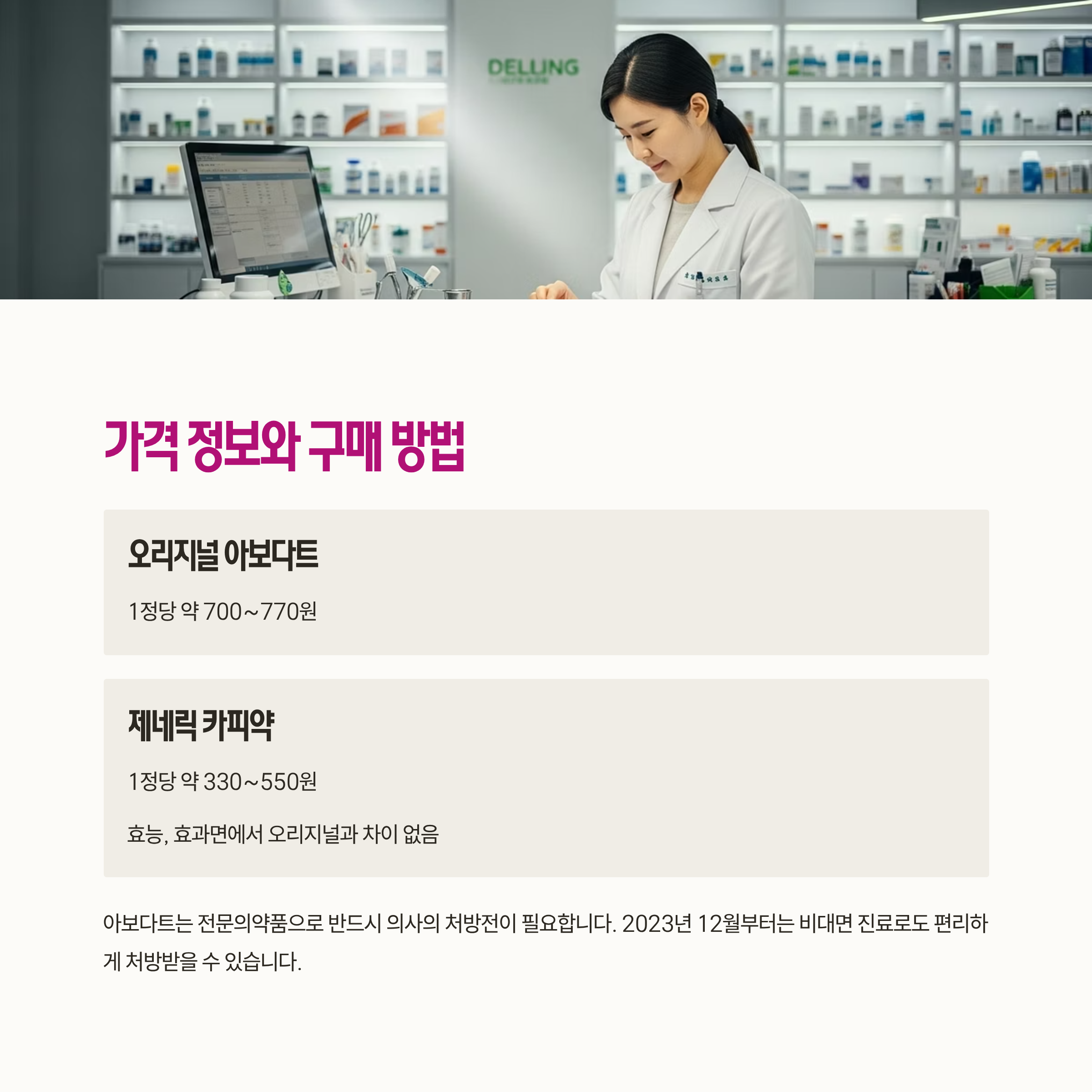아보다트는 전문의약품으로 반드시 의사의 처방전이 필요합니다. 현재 시중 가격은 다음과 같습니다: