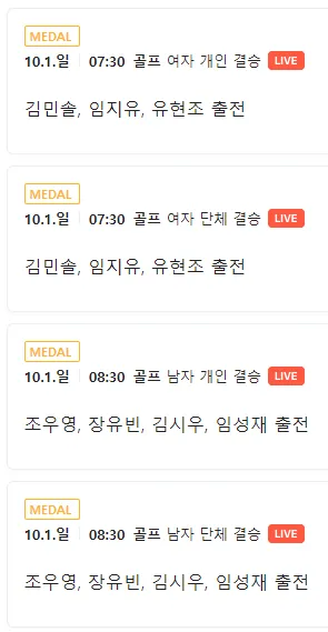 현재 진행 중인 아시안게임 골프에서는 남자 골프 대표팀이 단체전에서 금메달을 확정했으며, 개인전에서는 역전을 위해 노력해야 하는 상황입니다.