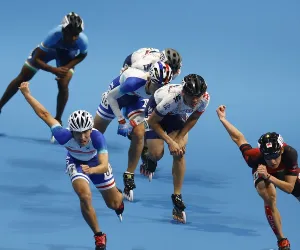 한국 대표팀의 정병희와 최인호가 롤러스케이트 대회에서 출전하여 처음으로 금메달을 획득했습니다. 정병희는 경기 전략으로 초반에 탐색전을 벌이고 중반에 스피드를 높여 후반에서 점수를 따는 전략을 사용했습니다. 최인호는 중반까지 선두 경쟁을 했고 후반에는 정병희의 득점을 지원했습니다. 이로써 한국 대표팀은 중국과 대만 선수들을 능가하여 금메달을 차지했습니다.