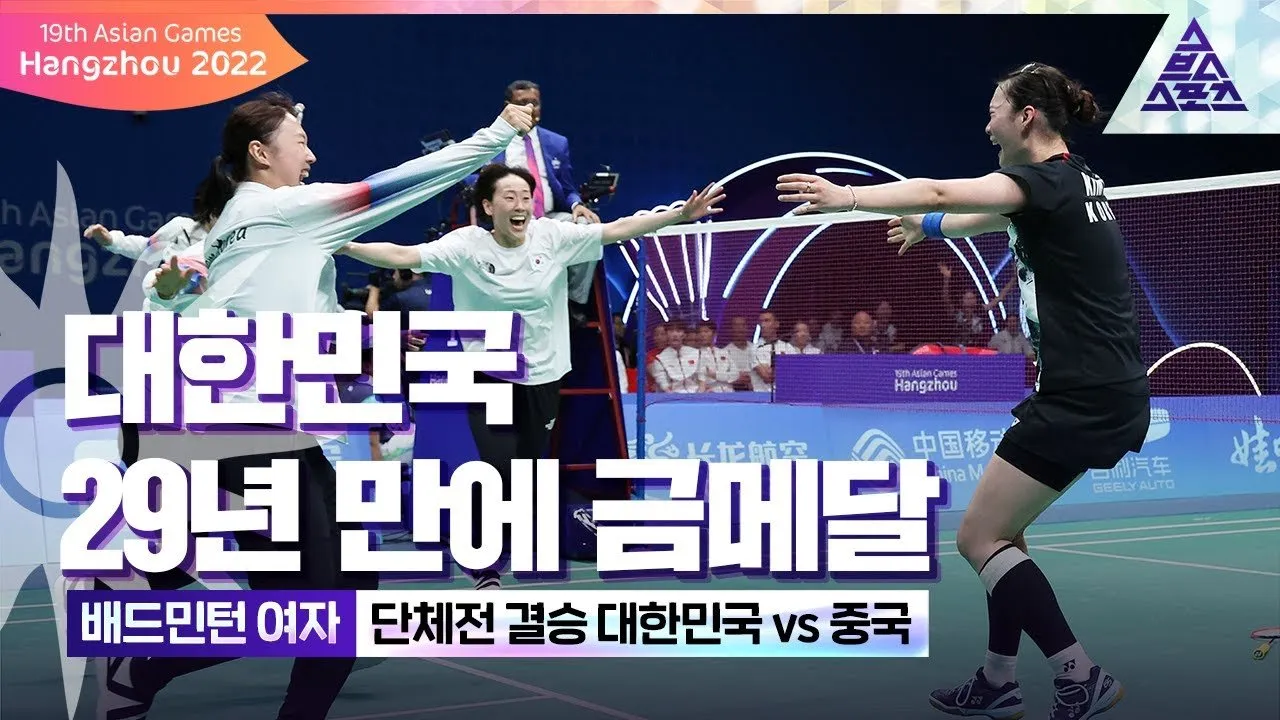 한국 여자 배드민턴이 29년 만에 아시아 정상에 오르게 되었습니다. 한국은 중국과의 결승에서 3-0으로 승리하여 1994년 이후 처음으로 아시안게임 여자 단체전에서 우승하였습니다. 이는 한국이 중국을 꺾은 지 29년 만에 성취한 것입니다.