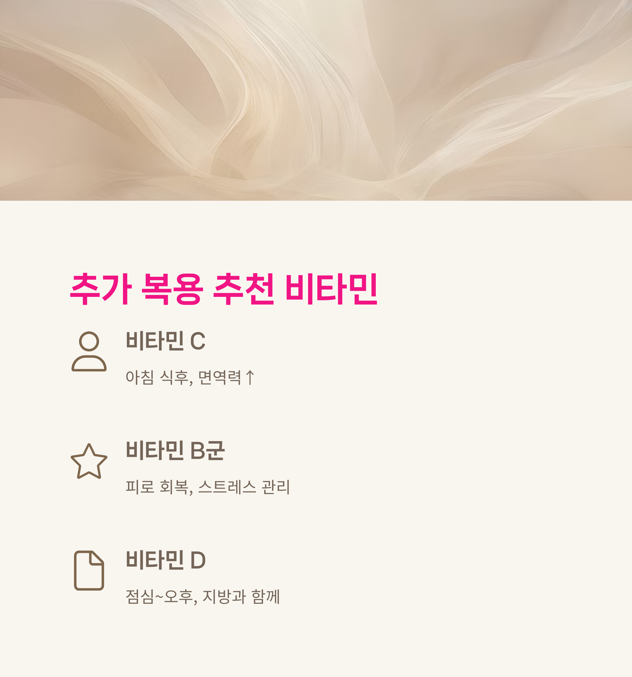 비타민 추가 복용 추천 - 비타민 C, B, D, 비오틴