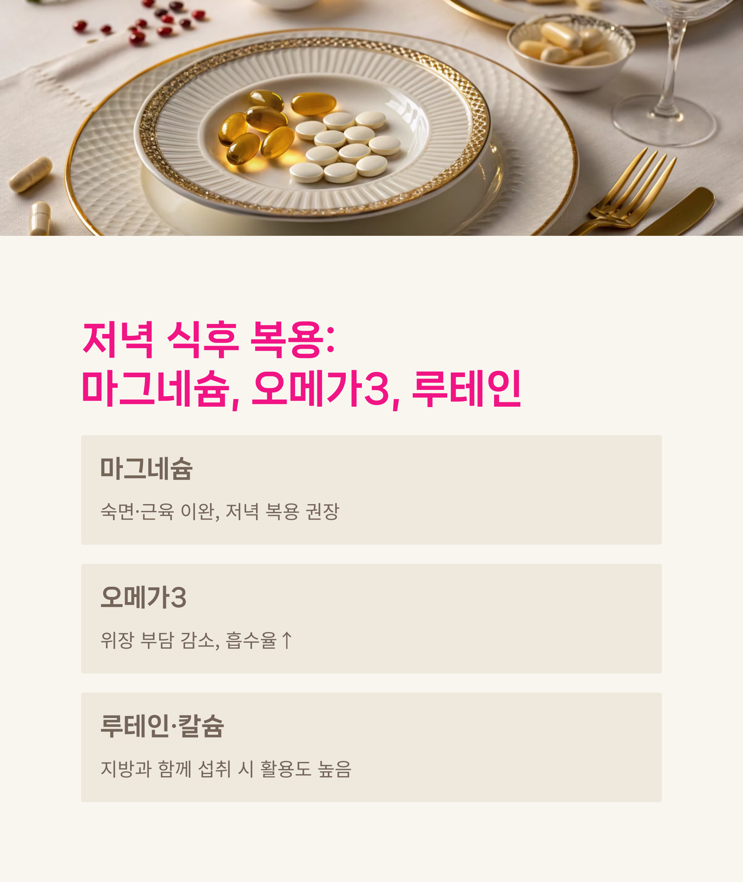 저녁 식후 복용 - 마그네슘, 오메가3, 루테인, 칼슘