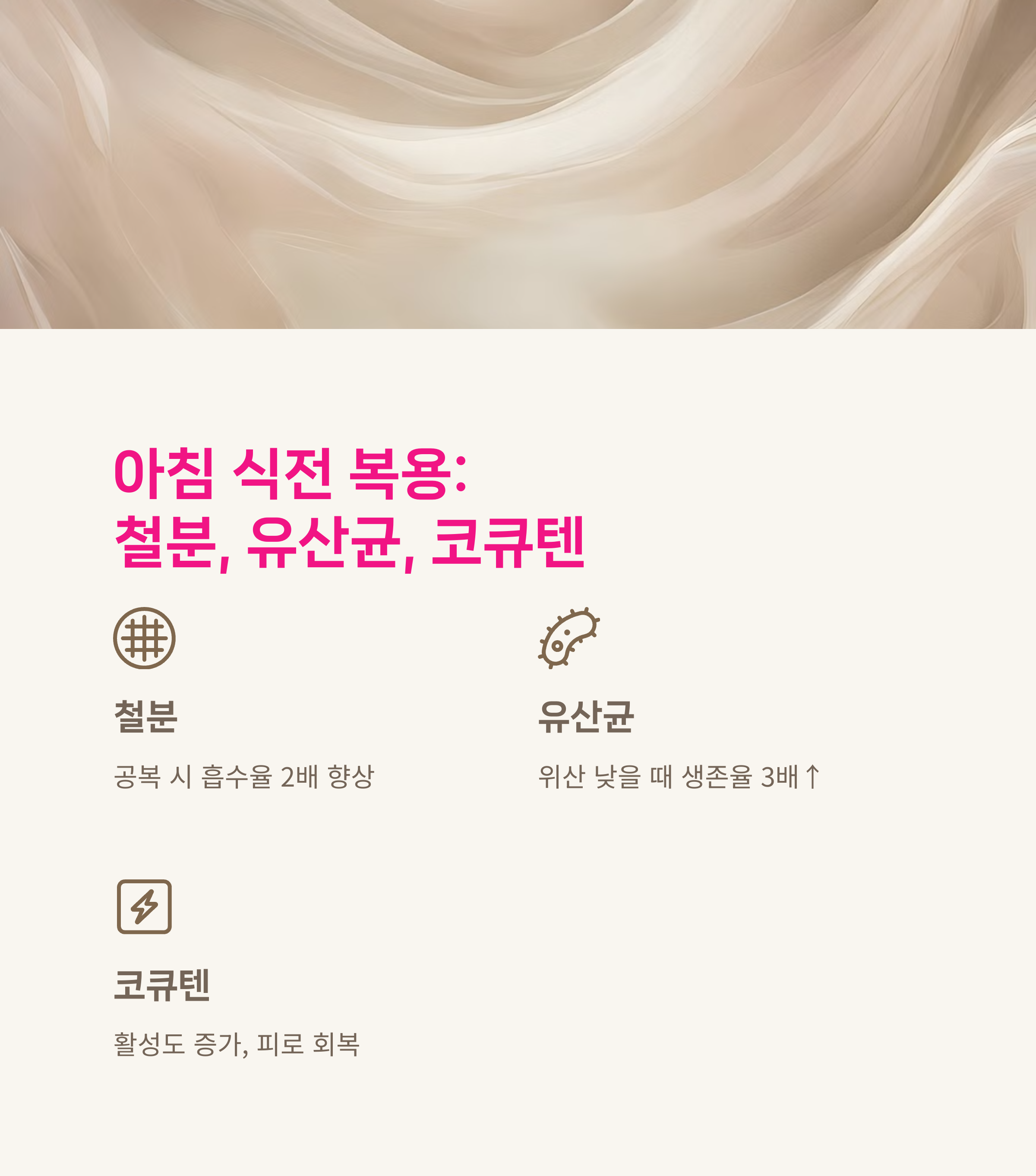 아침 식전 복용 - 철분, 유산균, 코큐텐 점검