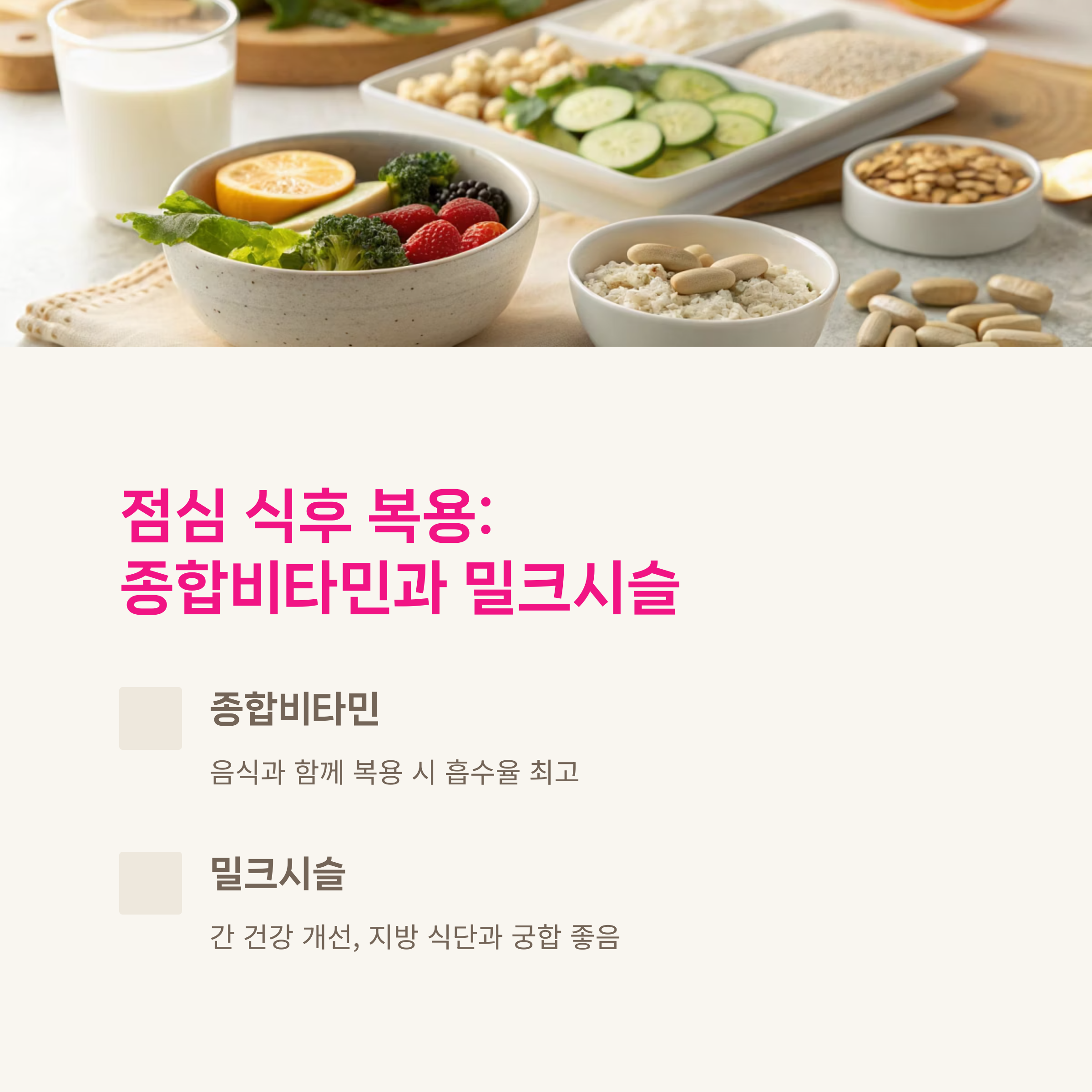 점심 식후 복용 - 종합비타민과 밀크시슬의 궁합