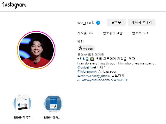WE + MIRACLE = WERACLE 우리 모두에게 기적을!! 비즈니스 문의 : weraclefactory@gmail.com http://www.instagram.com/we_park