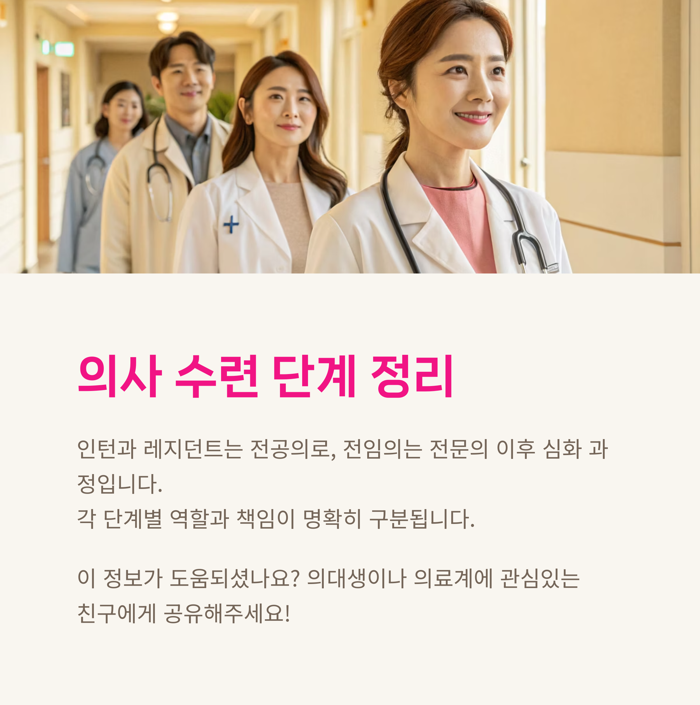 인턴, 레지던트, 펠로우, 전공의, 전임의의 차이가 궁금하다면? 의사가 되기 위한 수련 단계와 역할을 한눈에 정리했습니다. 쉽게 이해하고 대비하세요!