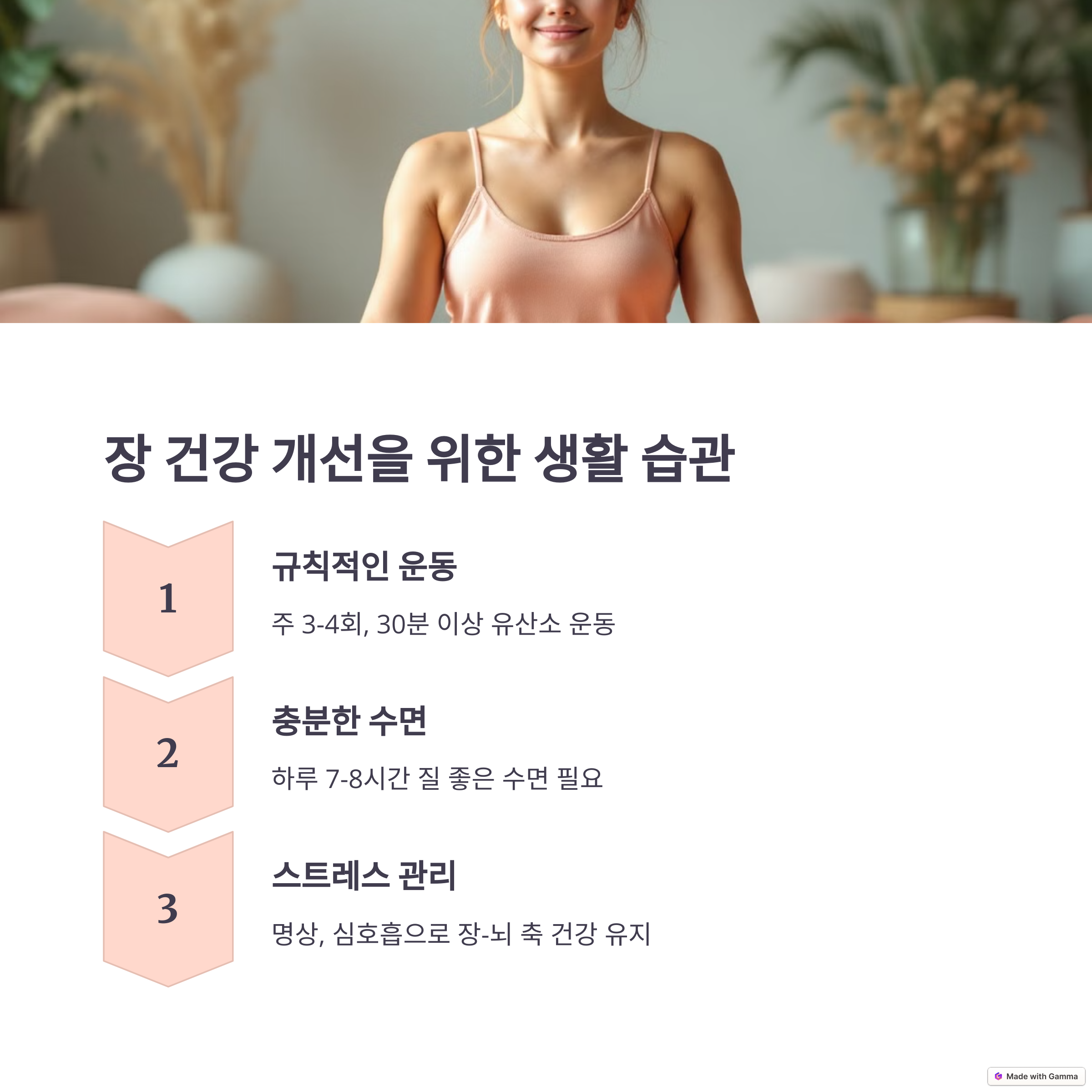 유산균을 포함한 발효식품을 섭취하고, 스트레스를 줄이며 충분한 수면을 취하는 것이 장 건강을 지키는 기본입니다.