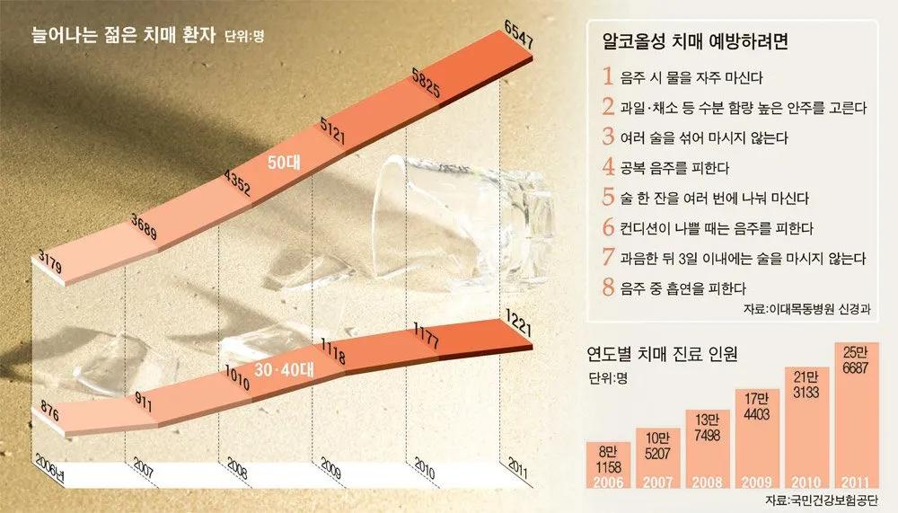 젊은 세대에서도 치매가 증가하고 있다는 것을 의미합니다. 이러한 상황은 알코올 과다섭취와 스트레스와 같은 요인들이 젊은 세대에게 치매를 유발하는 주된 원인으로 작용하고 있음을 보여줍니다.