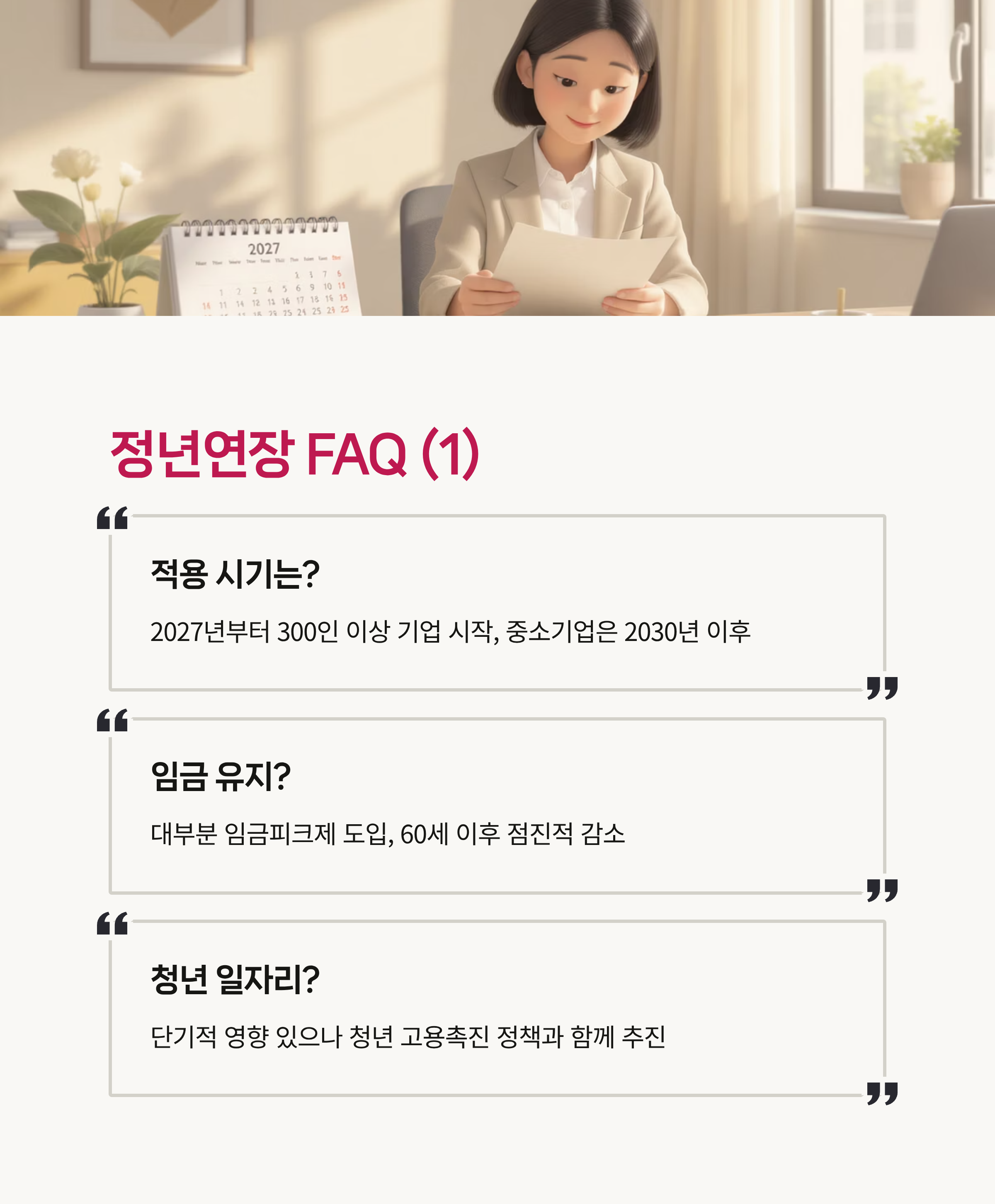 정년연장 정책의 최신 동향과 준비 방법이 더 궁금하시다면, 고용노동부 정년연장 가이드 바로가기에서 자세한 정보를 확인해보세요.