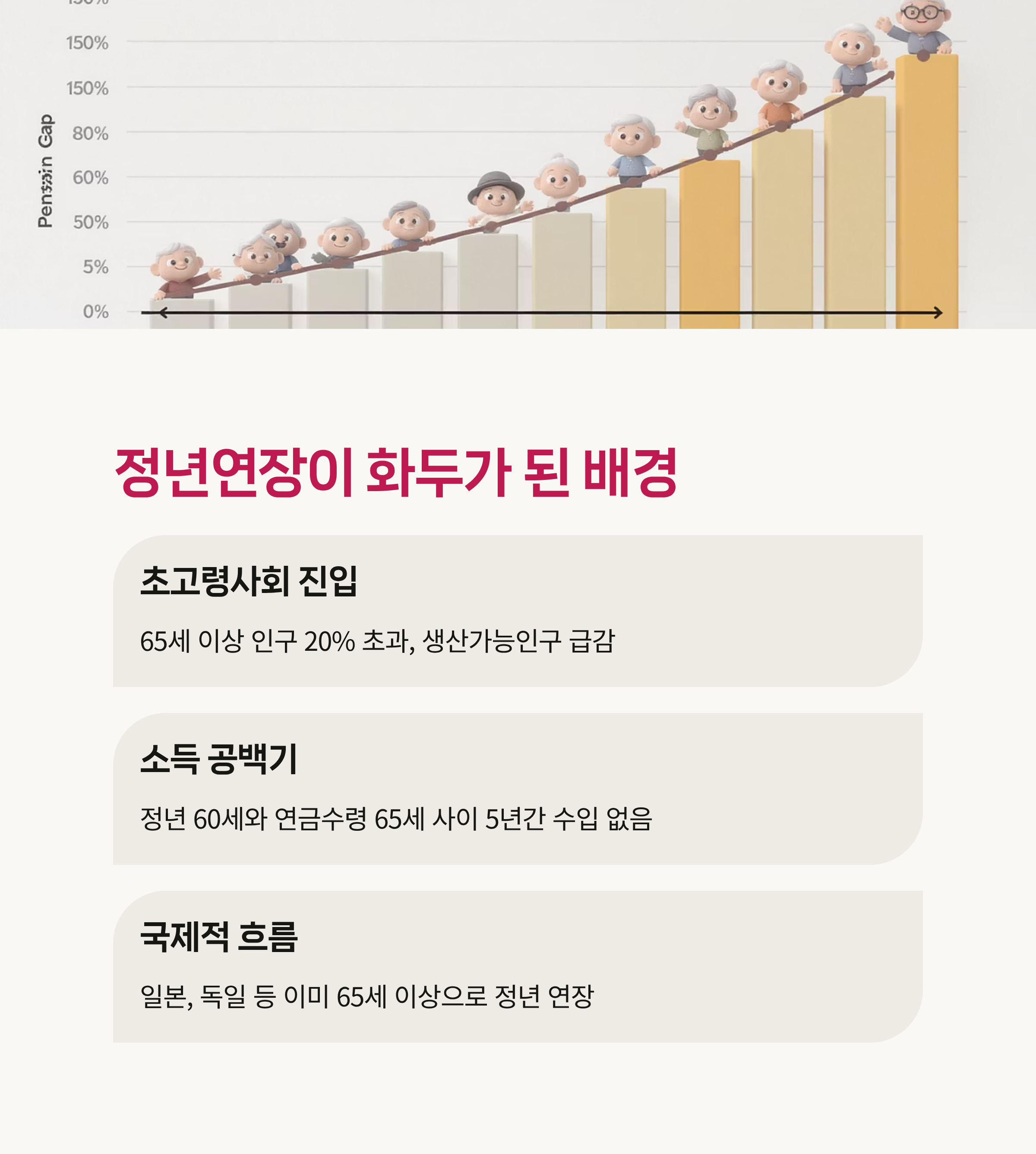 초고령사회로 접어든 우리나라에서 정년연장은 더 이상 선택이 아닌 필수가 되었습니다. 하지만 이 제도를 바라보는 시선은 극명하게 갈립니다. 고령자는 생계 안정을 위해 찬성하고, 청년층은 일자리 경쟁 심화를 우려하며 반대합니다.