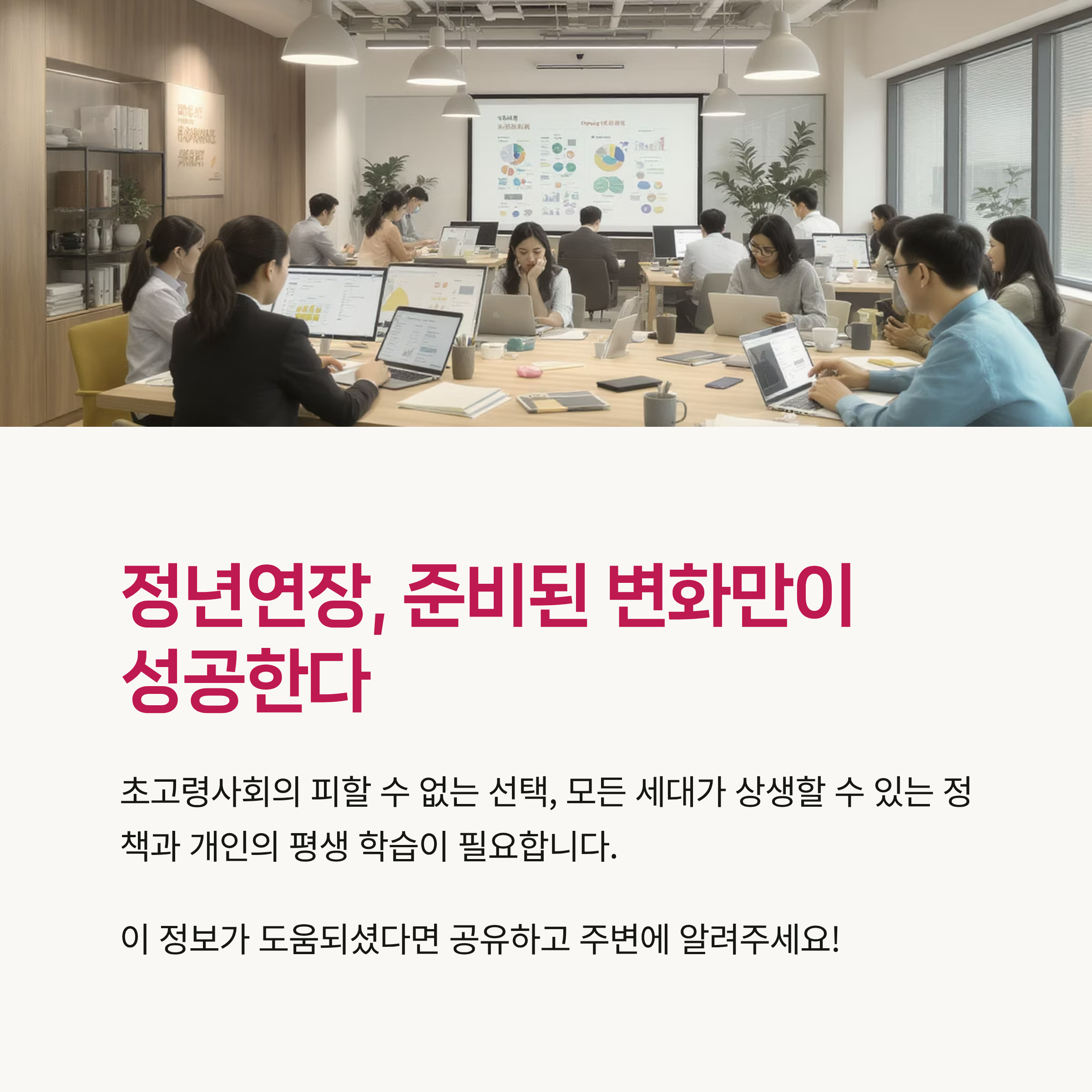 정년연장은 초고령사회의 피할 수 없는 선택입니다. 중요한 건 어떻게 준비하고 실행하느냐예요.