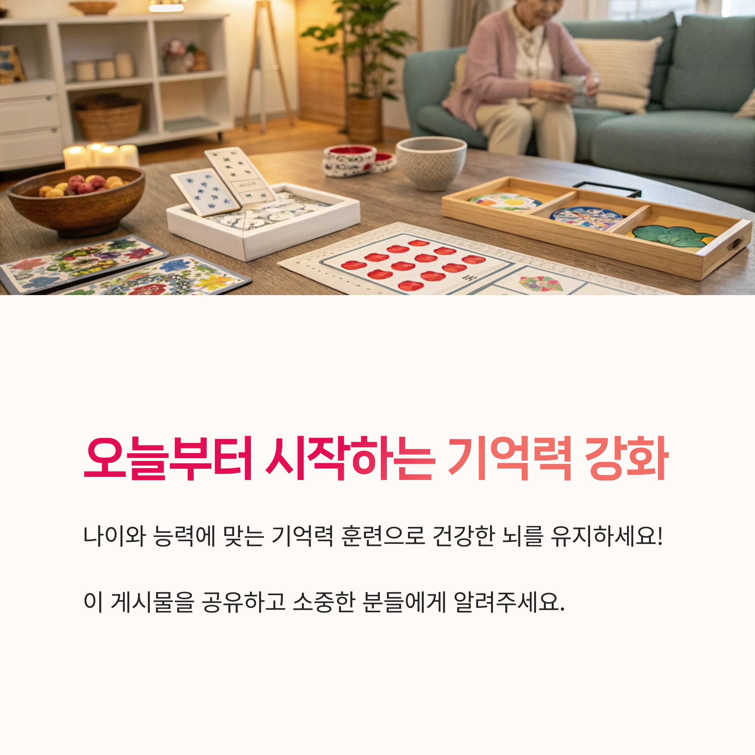 치매는 일상 속 작은 선택과 습관들이 오랜 시간 쌓여 영향을 미치기 때문에 지금 바로 관리가 필요합니다.