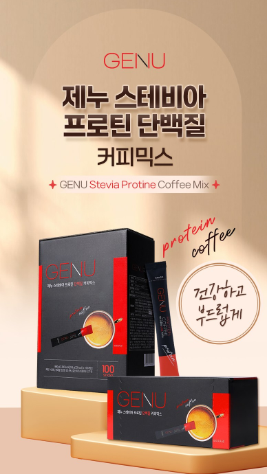 바로 요즘 핫한 "제누 프로틴 단백질 커피 믹스"입니다. 이 제품은 말 그대로 단백질이 들어간 믹스커피로 부족한 단백질을 보충할 수 있습니다.