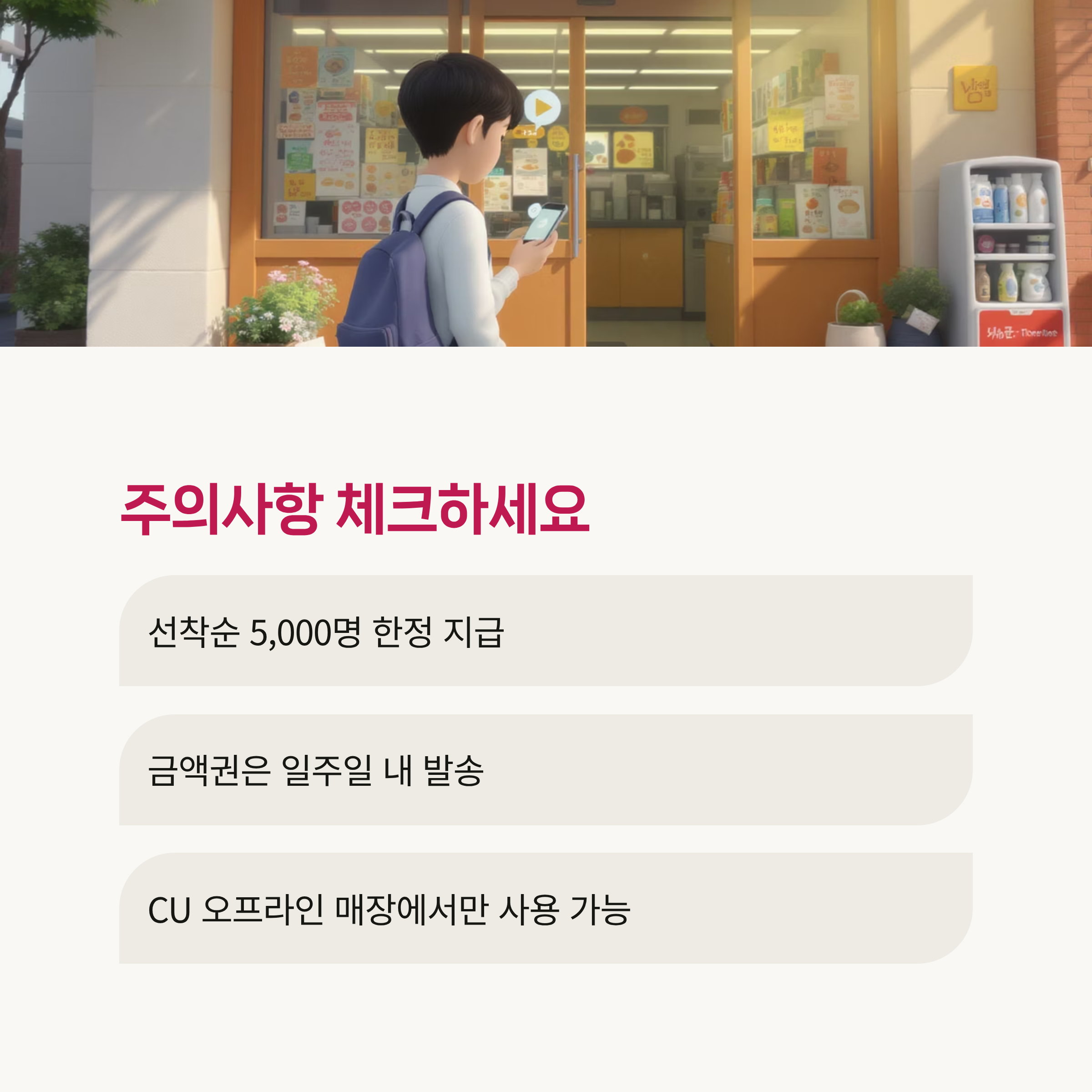- 받은 금액권은 CU 편의점 오프라인 매장에서 바로 사용 가능
