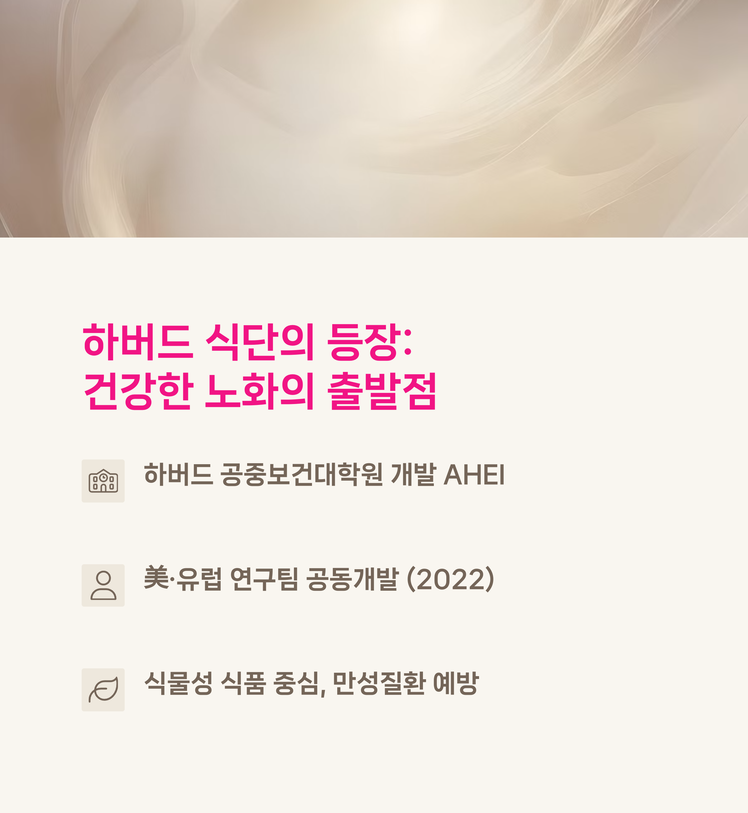 30년 추적 연구로 입증된 하버드식단 AHEI, 건강한 노화 확률을 86%까지 높여줍니다. 과학적으로 검증된 장수 식단, 지금부터 한 끼씩 실천해보세요.