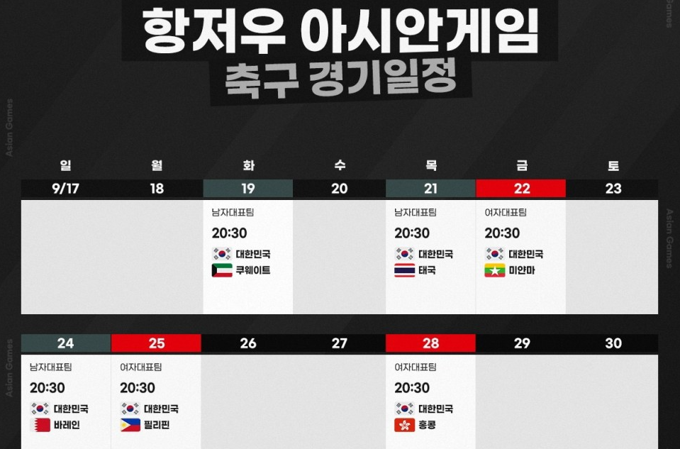 항저우 아시안게임 축구 경기 일정 중계방송 총정리