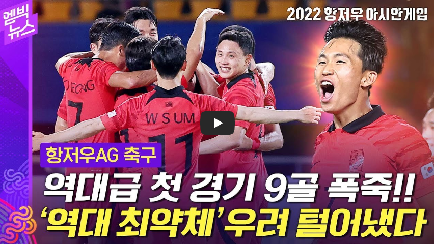 항저우 아시안게임 축구 1차전 대승 9:0