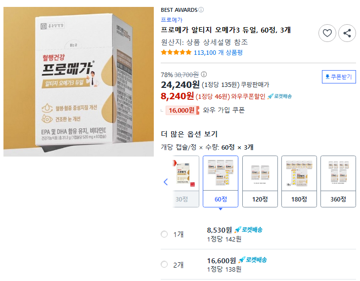 그래서 알아보고 선택한 제품이 바로 ‘프로메가 알티지 오메가3 듀얼’이에요.