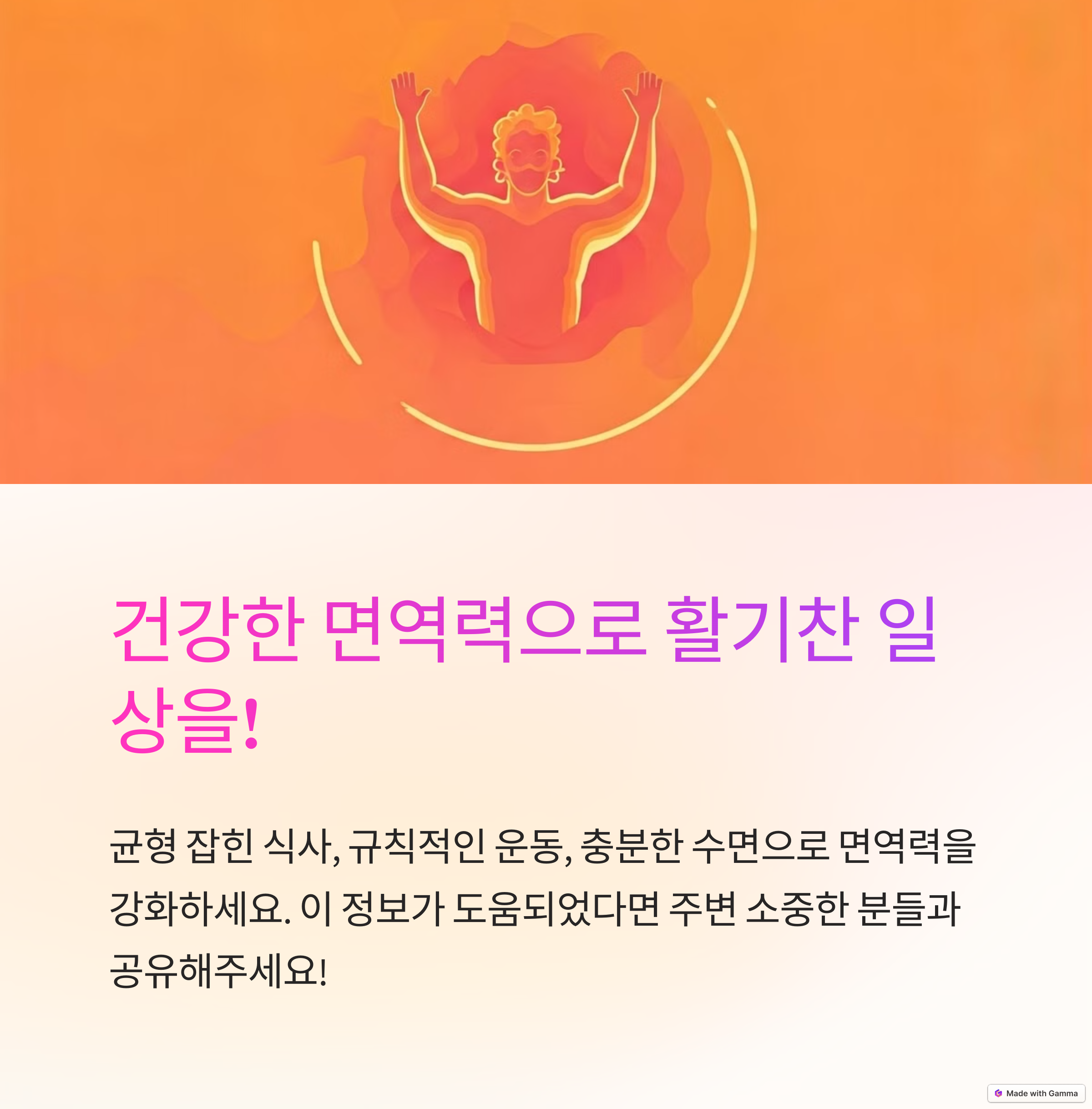 건강한 면역력을 유지하기 위해 지금부터 작은 습관을 실천해 보세요.
