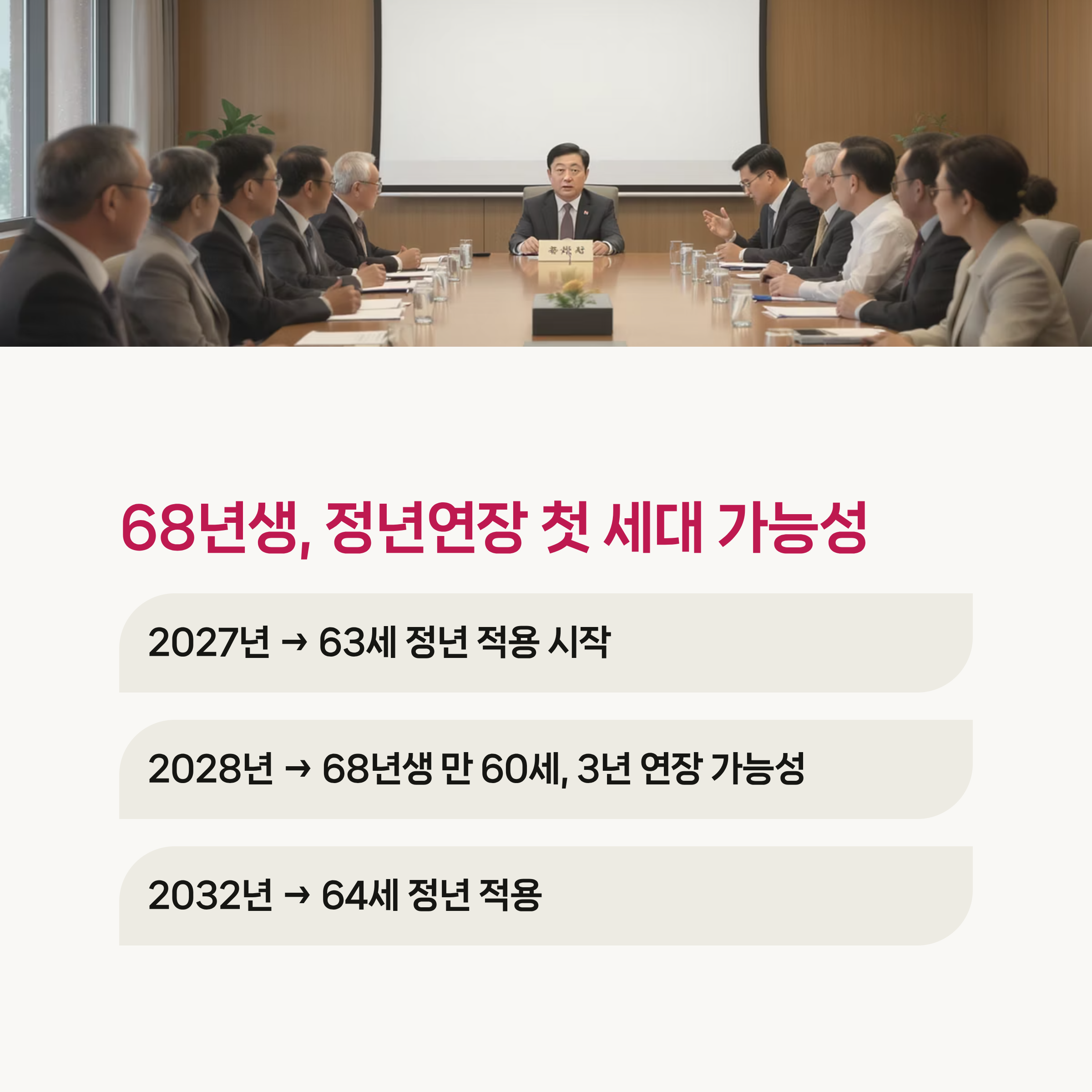 2028년에 만 60세가 되는 68년생은 정년 63세 대상자에 포함될 가능성이 높아요.